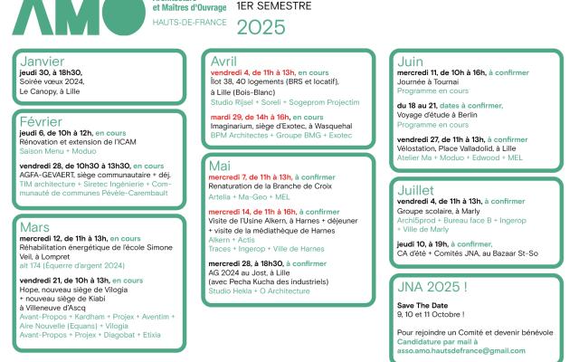 « Architecture et Maîtres d’Ouvrage » Hauts de France est créée en octobre 1985 avec l’ambition de promouvoir un référentiel partagé de qualité architecturale par tous les acteurs de l’acte de construire et de devenir force de proposition et d'interpellation auprès des instances décisionnaires. Cette plateforme d’échanges se matérialise par différentes actions et rencontres : visites de projets, voyages d’études, conférences thématiques, formations. Nous comptons une centaine de structures adhérentes réparties dans des collèges professionnels variés.