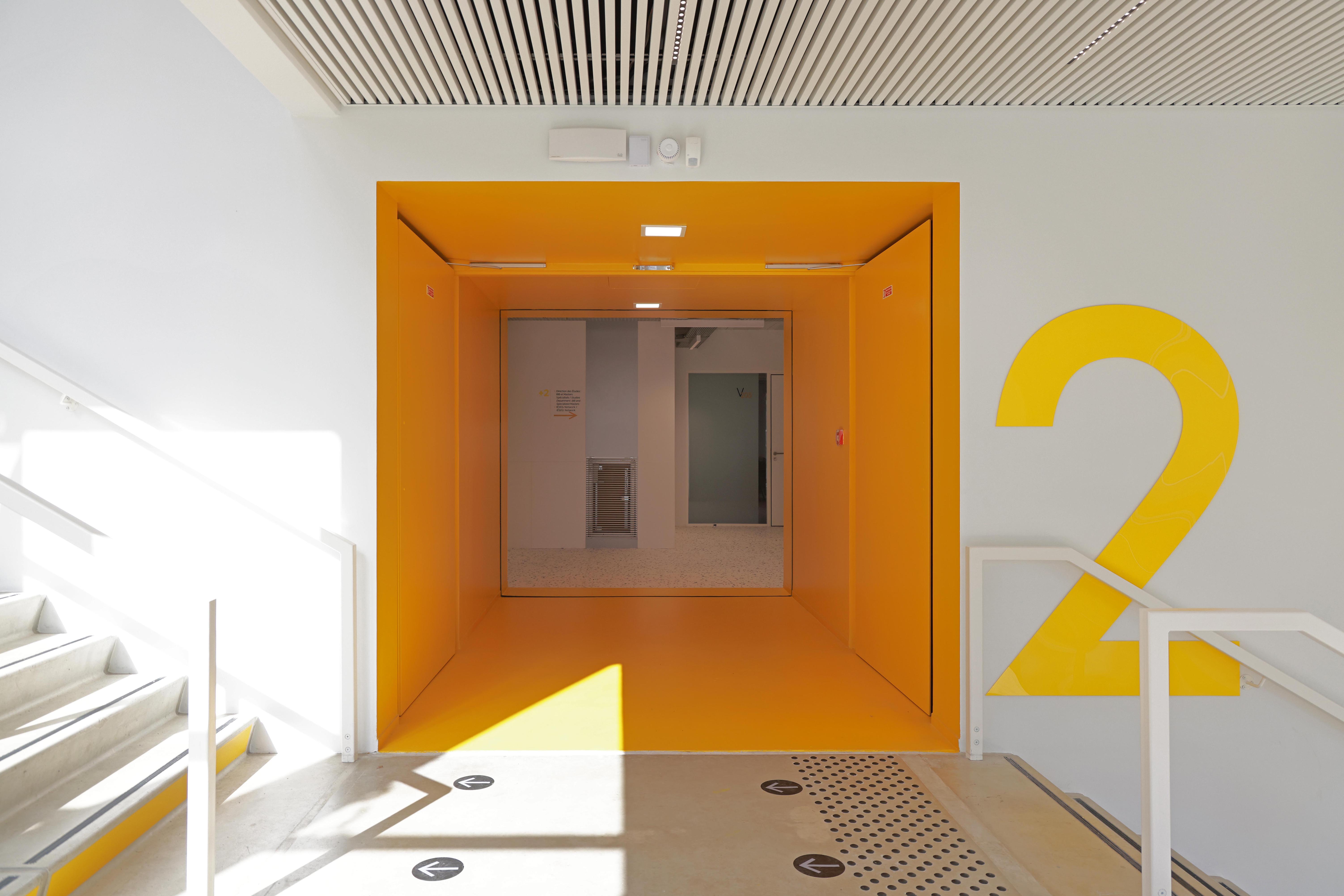 Plus de 11 000 m2 en plein cœur urbain historique ont subi une restructuration lourde pour transformer des surfaces de bureaux en un ERP d’enseignement nouvelle génération. Les locaux d’enseignement classiques sont accompagnés de multiples espaces de co-créativité et d’échanges : place du village, escalier monumental, dégagements, alcôves etc.
