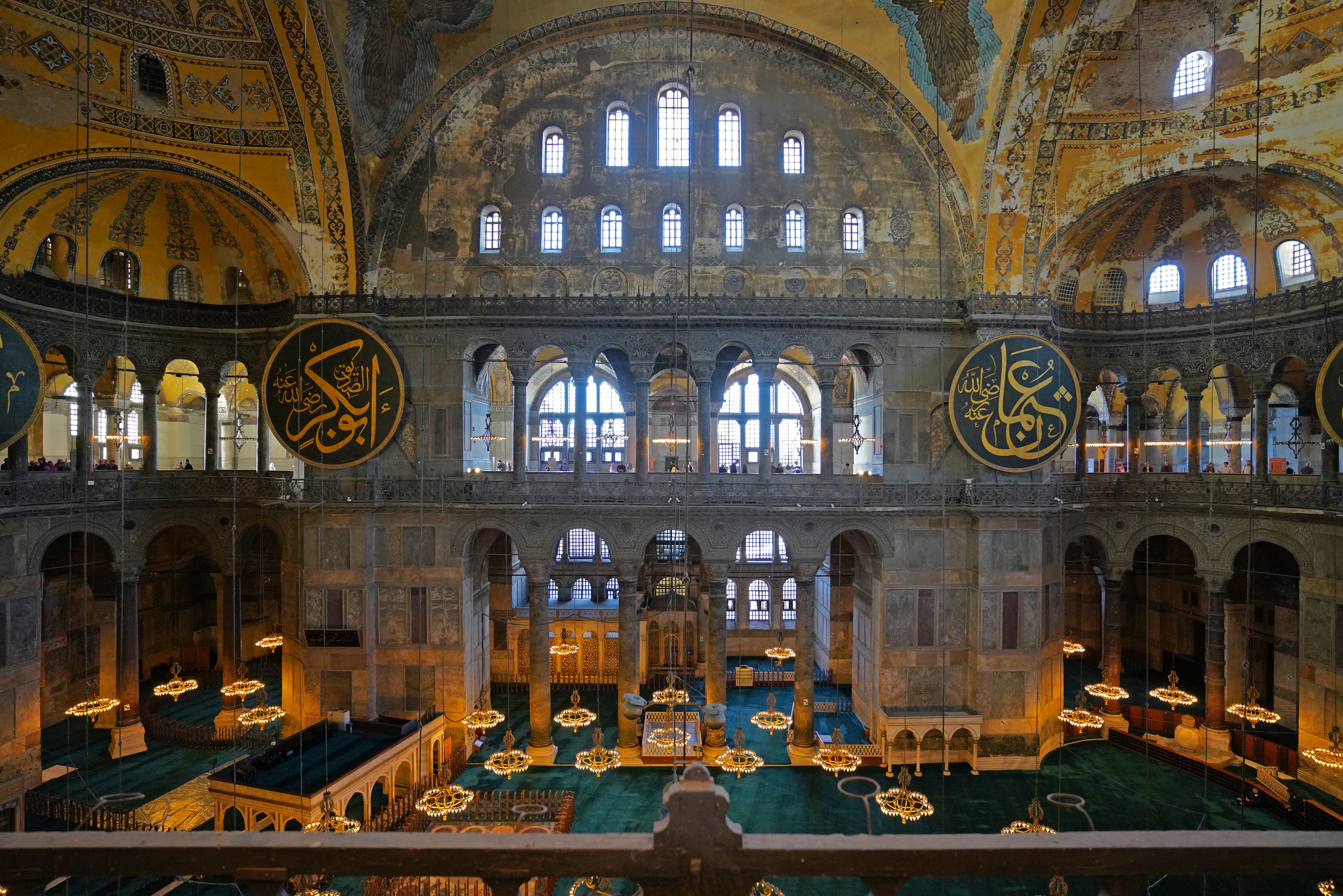 Sainte-Sophie. Ancienne basilique de Constantinople, construite entre 532 et 548, transformée en mosquée après la prise de la ville par les Ottomans en 1453, est devenue musée (musée de l'Aya Sofya) en 1934. Depuis le 10 juillet 2020, elle est réouverte au culte musulman.