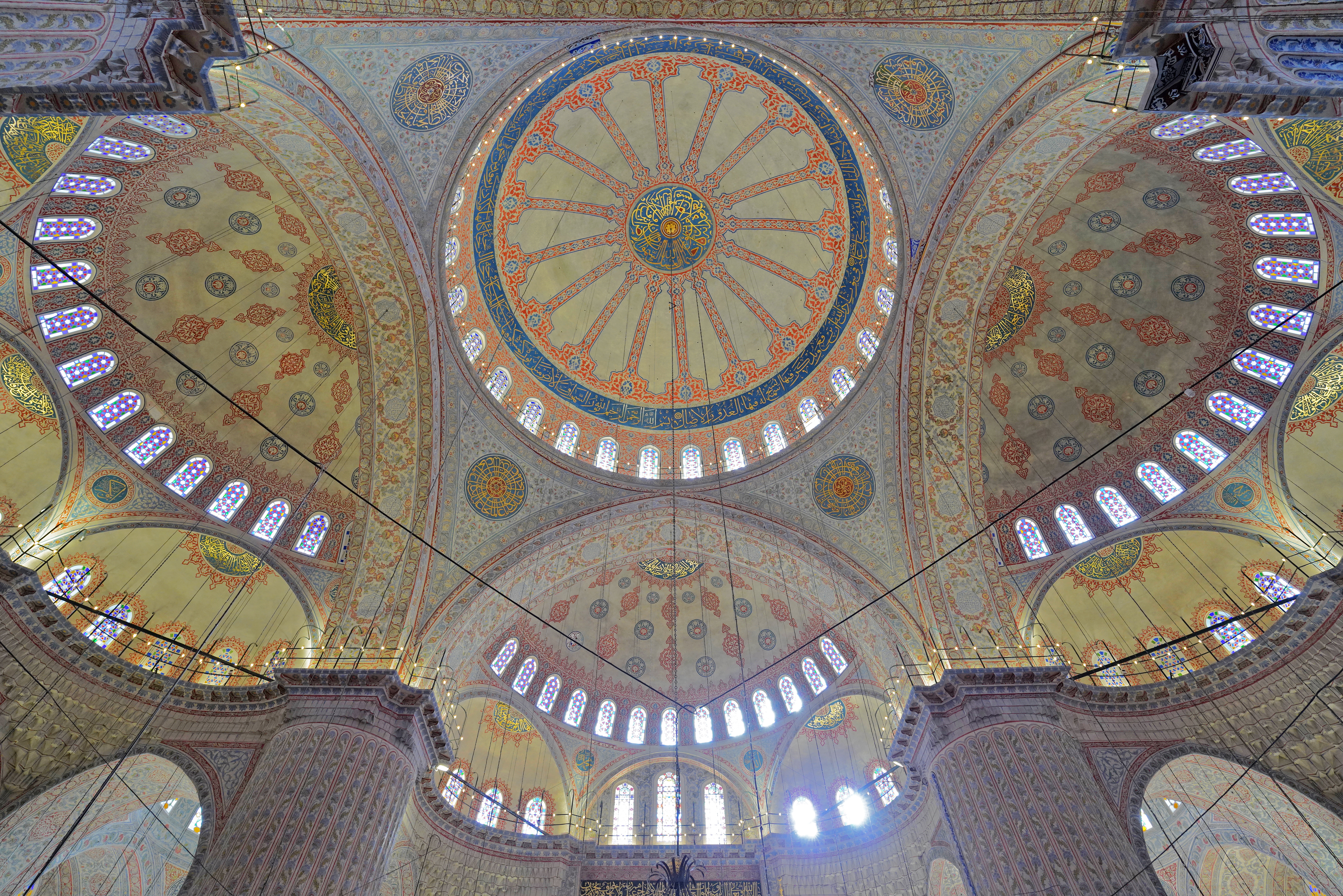 La Mosquée Bleue. Construite entre 1609 et 1616, sous le règne du sultan Ahmet Iᵉʳ, elle tient son nom des céramiques à dominante bleue qui ornent les murs intérieurs.