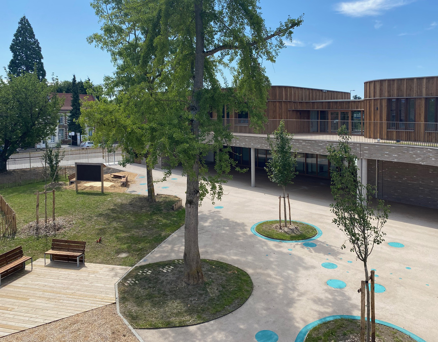 Ce deuxième niveau s’enroule à partir de la rue Paul Vaillant Couturier autour de la cour de récréation de l’école élémentaire à l’est de la parcelle. L’ensemble des classes de l’école élémentaire y prend place.