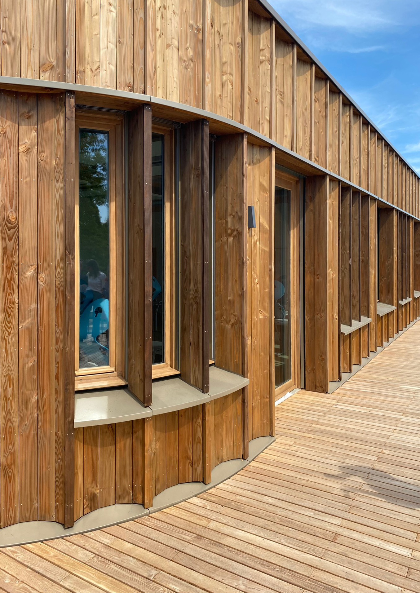 L'attique dont la structure et les façades sont en bois, est découpé en quatre volumes grâce à des courbes en creux qui apportent de la lumière dans les circulations.